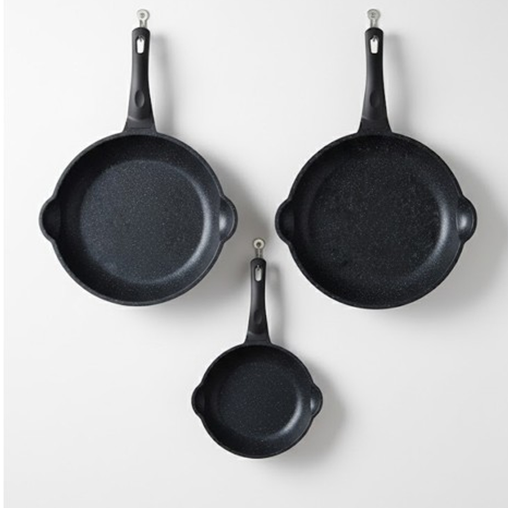 Cem Asur Döküm Granit Gümüş Siyah 3’Lü Tava Seti (20+24+28)